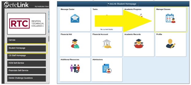 - Use the Student Homepage Manage Classes Tile to manage enrollments and class schedule (add, drop, swap, search for classes, browse the course catalog, view my classes, use the shopping cart, enroll by my requirements, manage class planner)