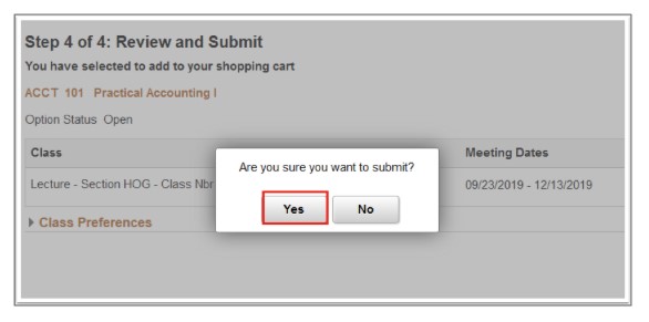 Step 15: Submission Confirmed. The updated Confirmation page will display. Select View My Classes on the left side to confirm that your class has been added.