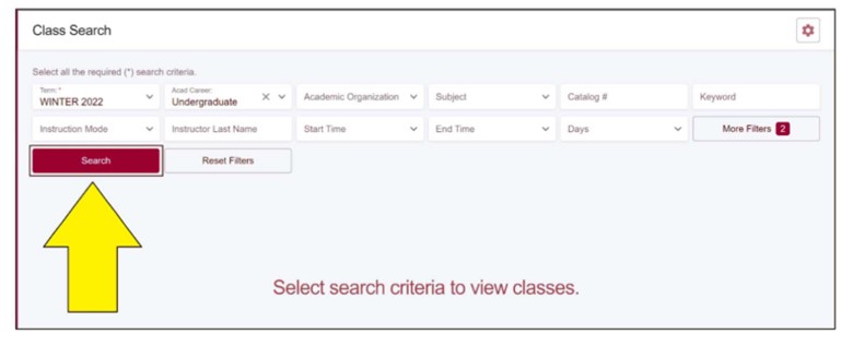 Step 4: At the top of the page you can enter a keyword to search for specific classes. Then click on the Search button.