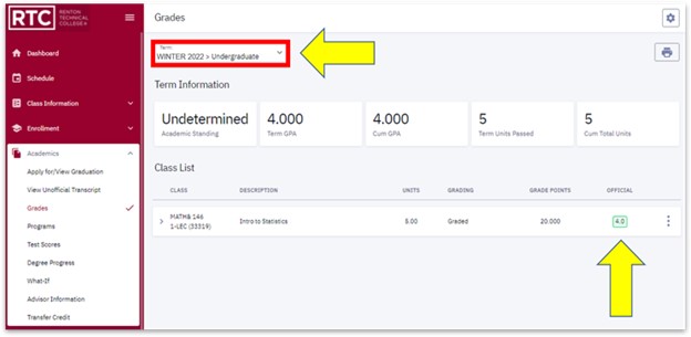 Step 3: Select Term, select the appropriate term using the Term dropdown menu